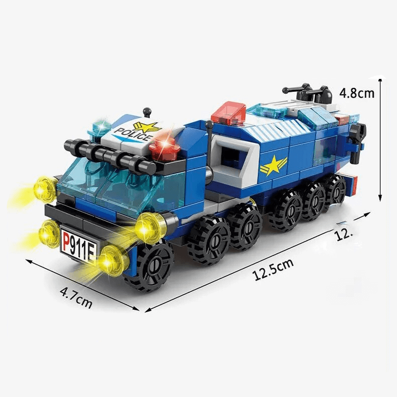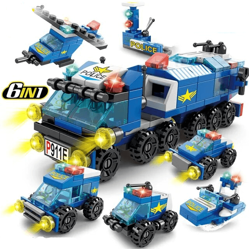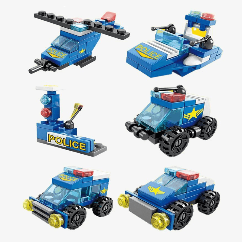Intelligensutvecklande 6 i 1 Byggklossar – Brandbil, Polisbil och Ingenjörsfordon - Polisbil