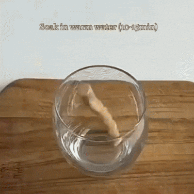 - Blötlägg spetsen i varmt vatten i cirka 10–15 minuter för att mjuka upp den innan användning.