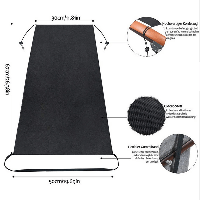 Vår mångsidiga sufflett fungerar som solskydd, regnskydd och synförstärkare i ett. Med dess bekväma rullfunktion kan du smidigt rulla upp skylten med hjälp av den bifogade snöret och återställa din babys klara syn.