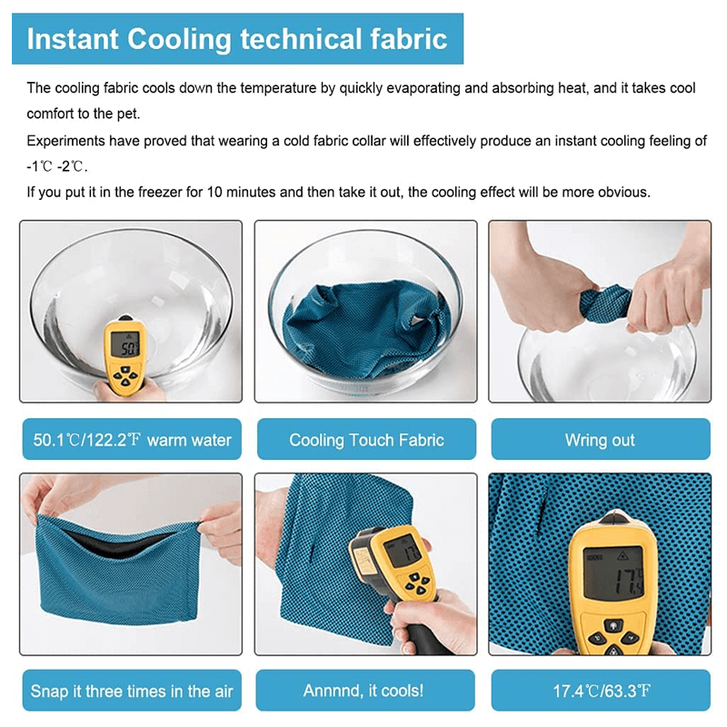 Med sin mjuka och luftiga design kan denna krage användas om och om igen, och erbjuder ett enkelt sätt att svalka ner ditt husdjur utomhus.