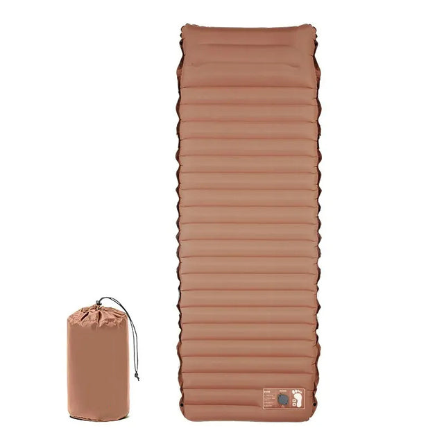 Luftmadrass Med Inbyggd Luftpump Fotpump 10cm, 3.0-3.2 R-värde Dubbla Lager - Brun