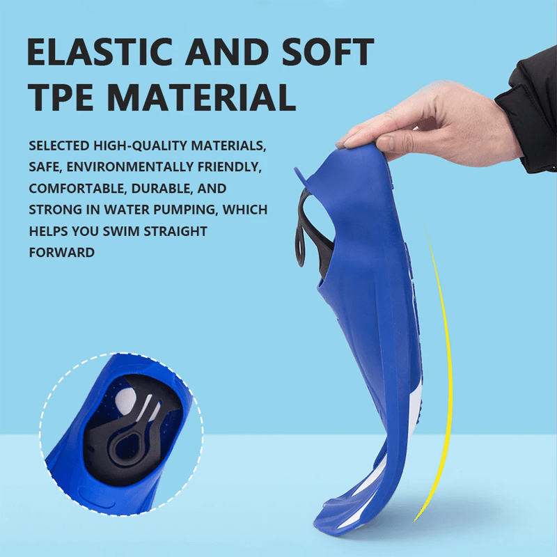 ✅ Bekväm och Säker Passform - Tillverkade av elastiskt och mjukt TPE-material erbjuder dessa simfötter en tät och bekväm passform för både vuxna och barn, vilket minskar risken för att de glider av under användning och låter dig fokusera på din simning.