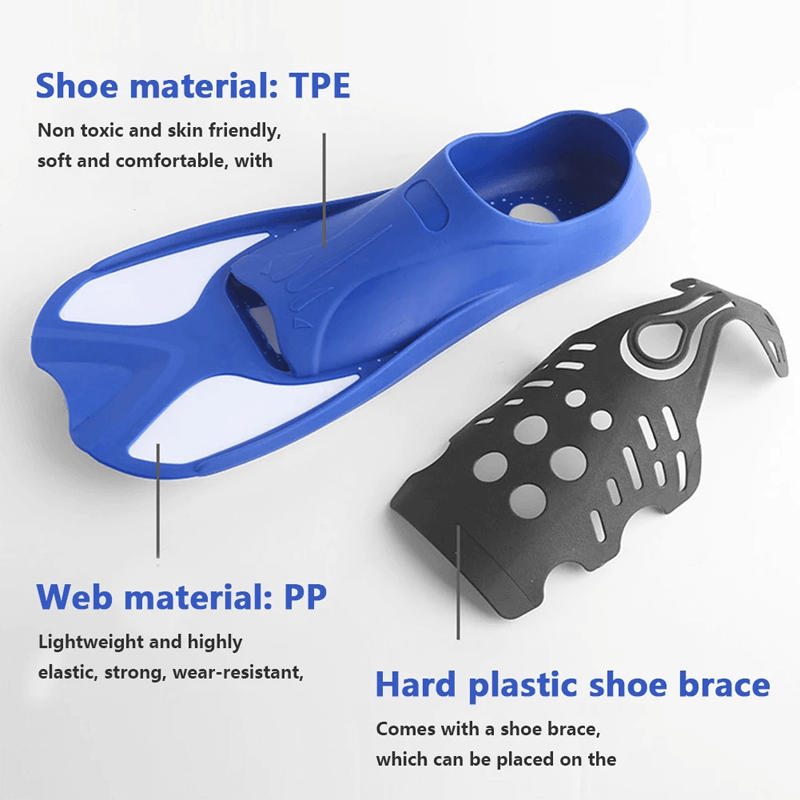 ✅ Förbättrad Framdrivning - Våra simfötter har en medium längd och bred yta, vilket ger enastående kraft för en stark sparkfrekvens och säkerställer att du glider genom vattnet utan ansträngning vid varje simtag.