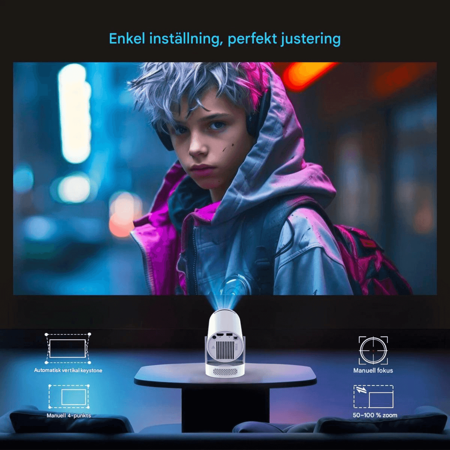 - 🔄 Smart auto-keystone og fleksibel 180° rotation – kan gøre placering og billedjustering lettere