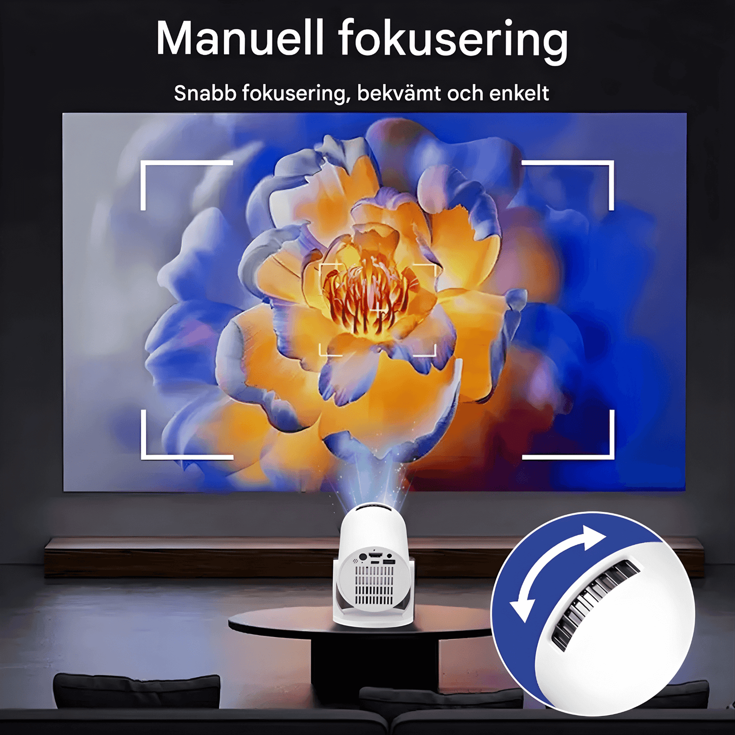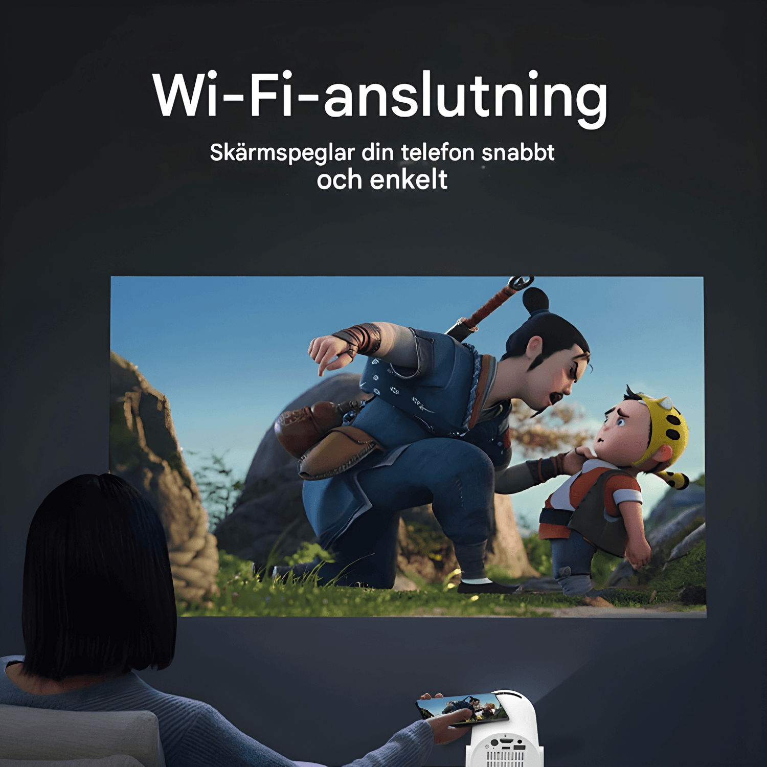 På trods af sin lille størrelse kan projektoren levere et lysstærkt billede med klare farver og et højt kontrastforhold. Den trådløse skærmdeling gør det muligt at vise indhold direkte fra mobilen, tablet eller computer uden kabler, hvilket kan gøre møder, filmaftener eller gaming mere fleksibelt.
