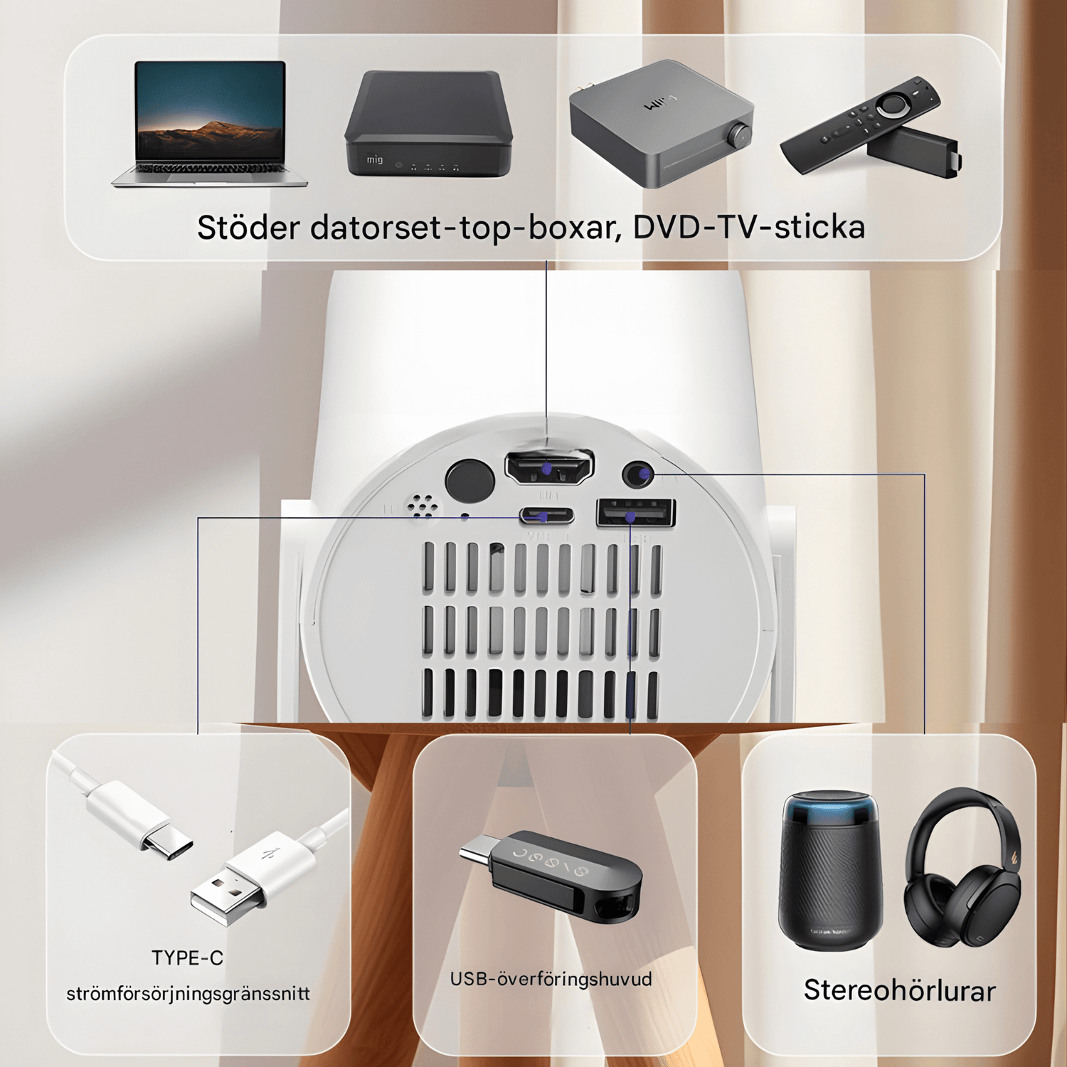 • 📱 Trådløs skærmdeling – kan spejle telefon eller computer uden kabler