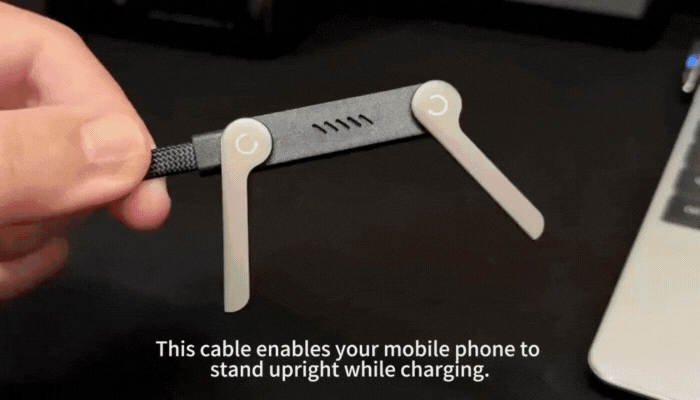 Det foldbare design gør det muligt at skifte mellem at bruge kablet som et almindeligt kabel og som stativ, alt efter behov.