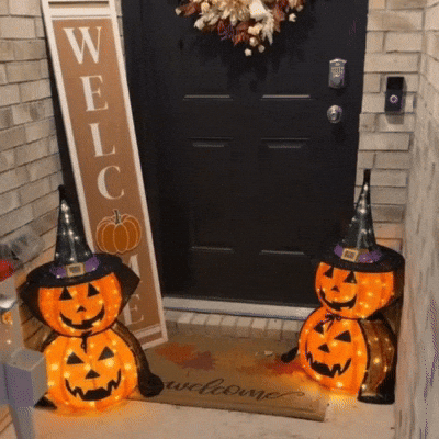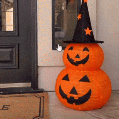 - 🎃 Festliga 3FT staplade pumpor – med klassisk jack-o’-lantern-design och stilfull svart stjärnhatt, hopfällbar för enkel förvaring och transport.
