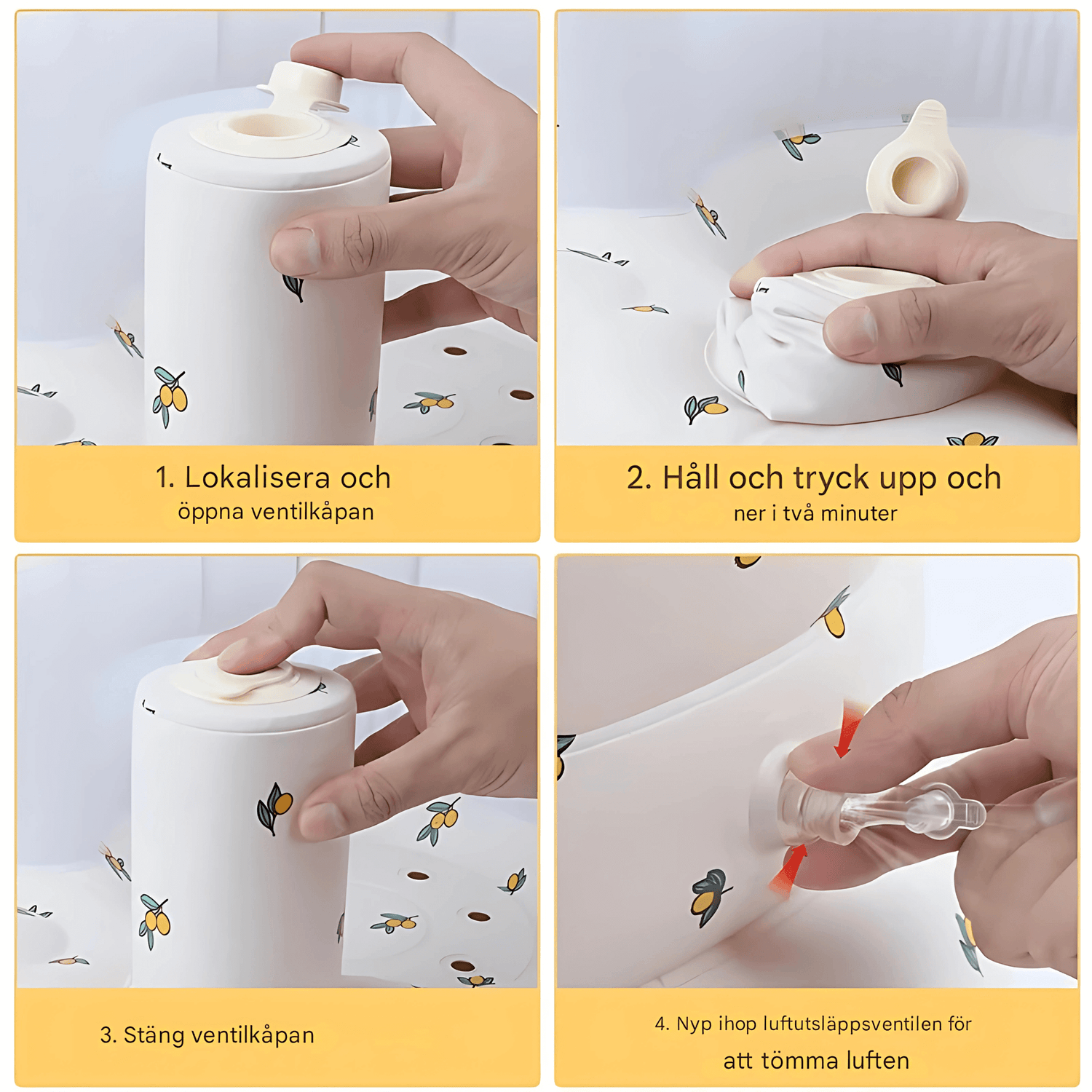 BabyNest is designed to make baby's sitting time more comfortable and convenient. The inflatable chair can be used at feeding time, in the bathroom, or as an extra chair when playing. Thanks to its compact design, it can be easily deflated and stored when not in use.