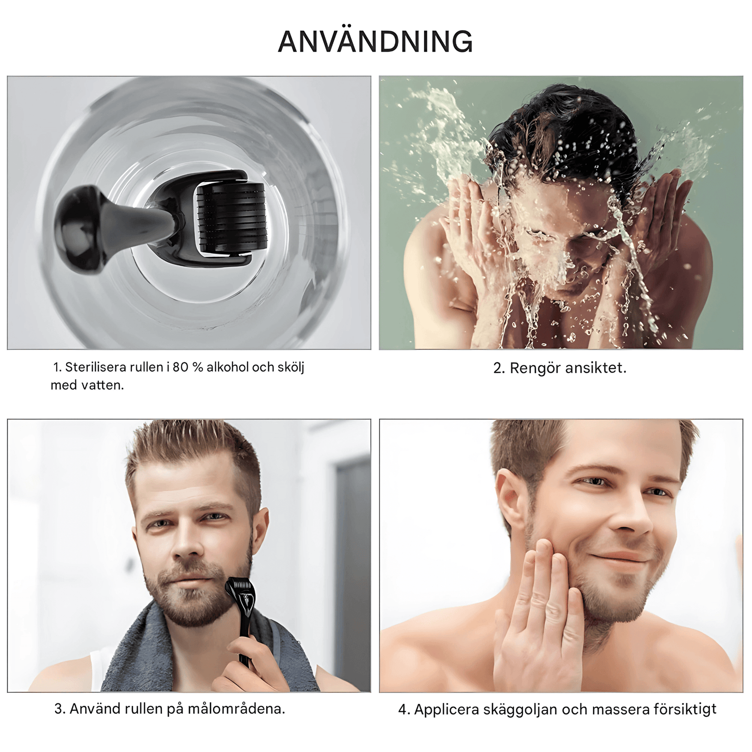 - Use the roller over the skin under the beard to stimulate absorption of ingredients.