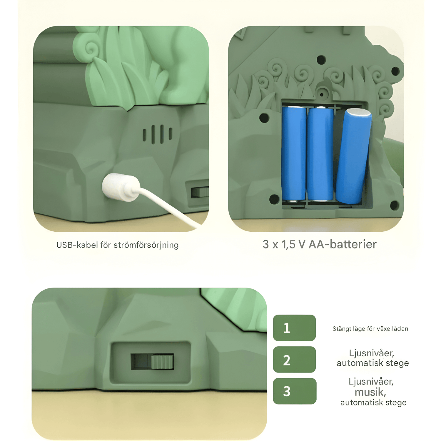 With DinoTrack, children can explore a dual-track slide where small figures can climb the stairs and slide down again. The dynamic design can contribute to exciting play sessions, while the light and music effects can make the experience more lively.