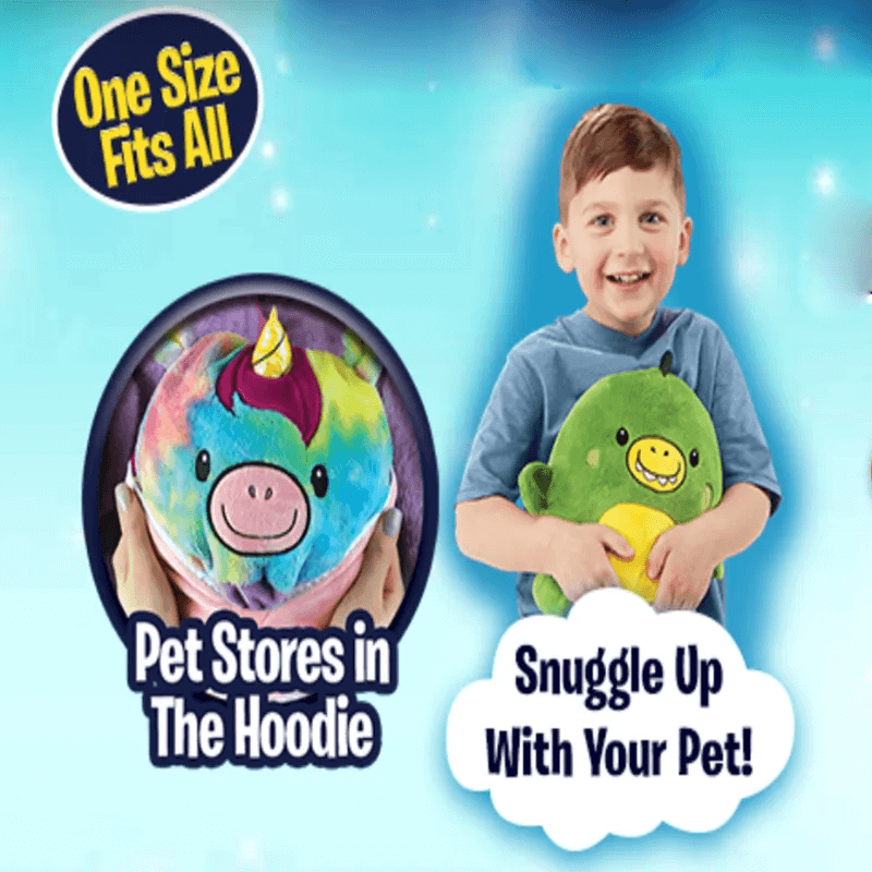 Genom att förvandlas från en supermjuk gosedjur till en mjuk och varm huvtröja blir den den perfekta följeslagaren för bilresor och fungerar också som en mysig kudde.